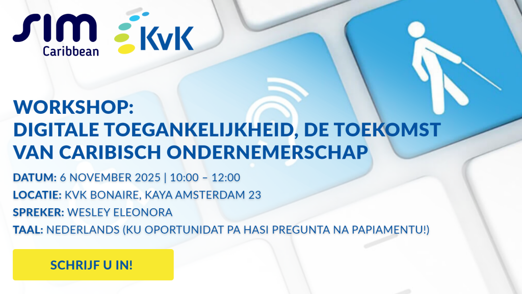 During this SIM Caribbean session, led by Wesley Eleonora, we’ll explain what digital accessibility entails and why it’s becoming increasingly important for entrepreneurs and organizations on Bonaire and in the broader Dutch Caribbean. We’ll explore the current state of affairs and trends in digitalization and accessibility, and what this means for local businesses.